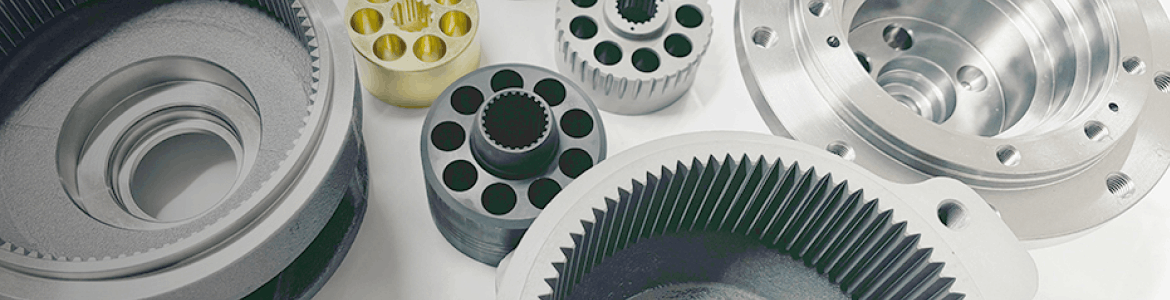 ショベルカーやクレーンなどの走行や旋回動作を実現する油圧モーター部品。建設機械の360度回転を可能にする重要な役割を担っています。