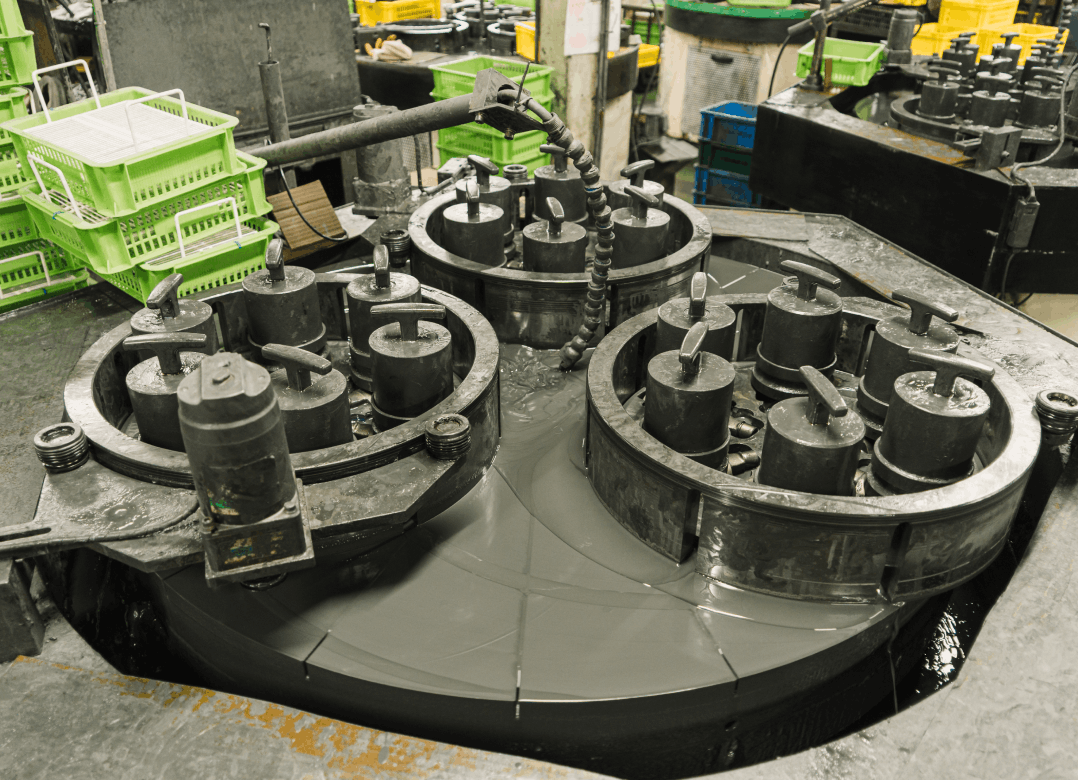 砥粒(スラリー)を用いた表面の平面度・鏡面仕上げ加工技術。この加工精度は1ミクロンに達しており、シリコンウェハーと同等の加工方法で高い技術力により製品を供給しています。