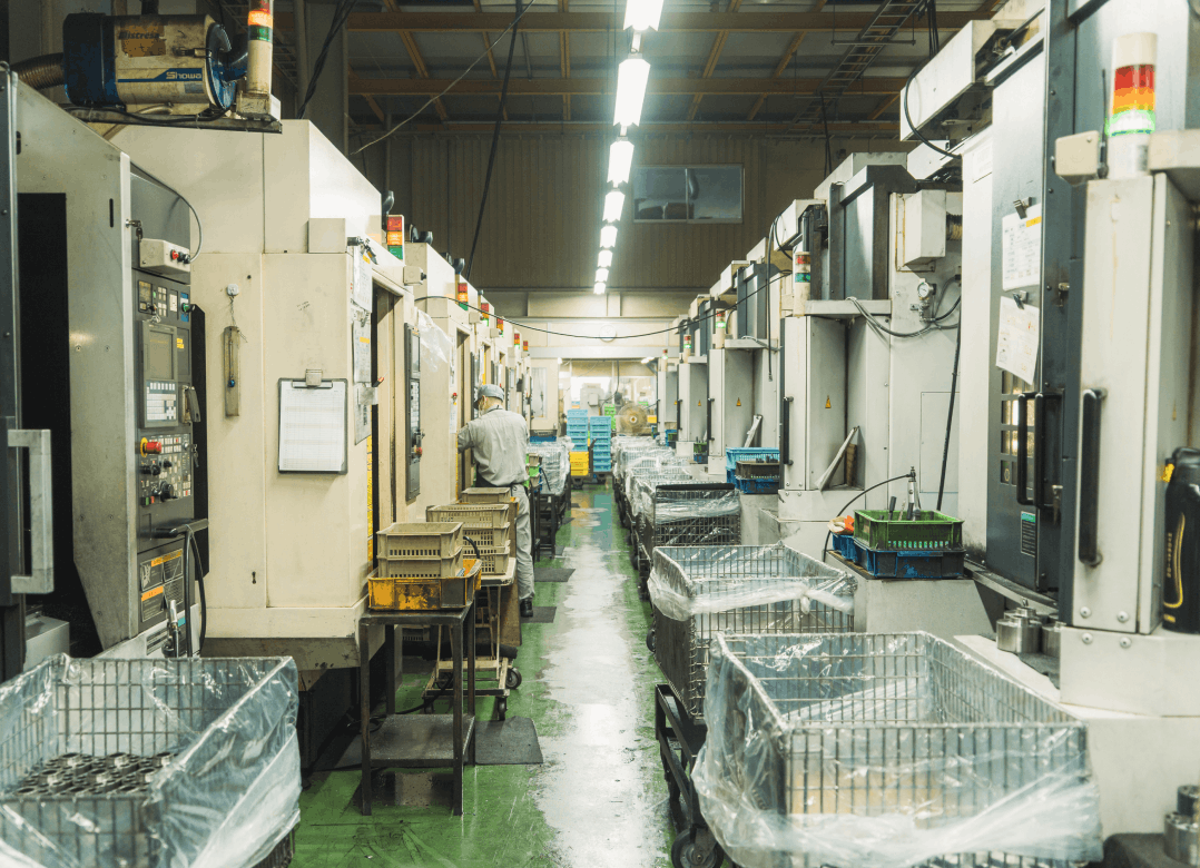 NC旋盤、マシニングセンタ、立形5軸、自動旋盤、研削盤、洗浄機、検査機器など、150台あまりの工作機械を保有。多品種・小ロットから大量生産まで、あらゆる加工ニーズに社内一貫体制で対応できます。